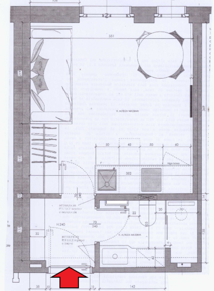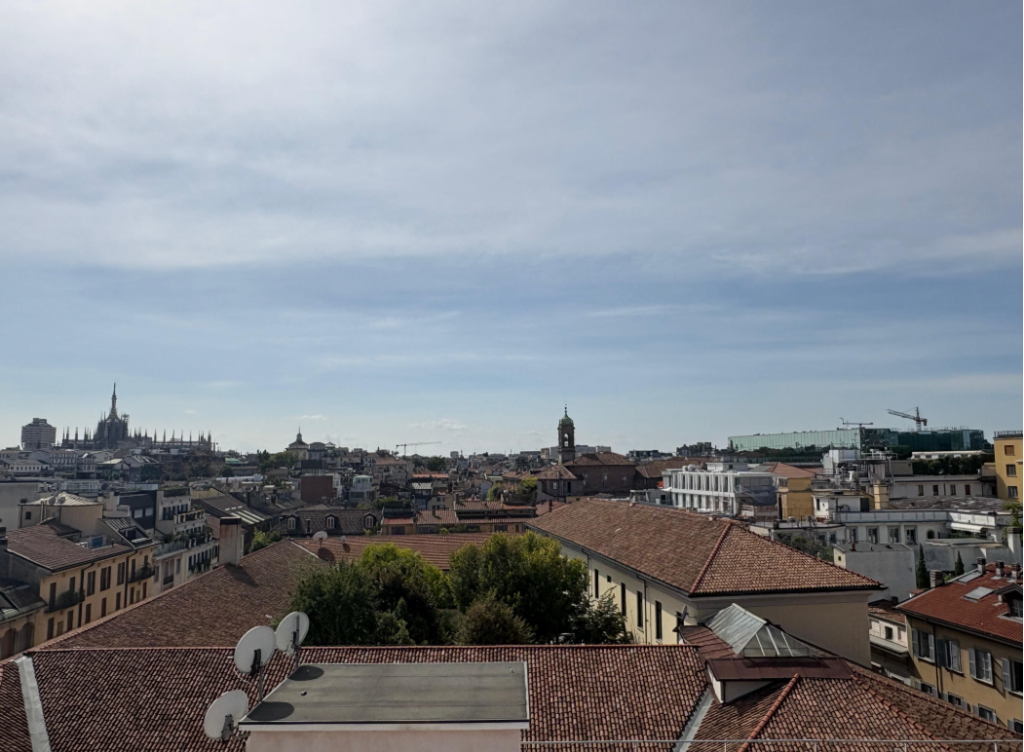 Al settimo e ultimo piano di un palazzo signorile, attico monolocale di mq. 25, arredato e completamente ristrutturato, con riscaldamento e acqua calda centralizzati, ascensore e portineria. Splendida vista a sud sul Duomo e il Quadrilatero della Moda